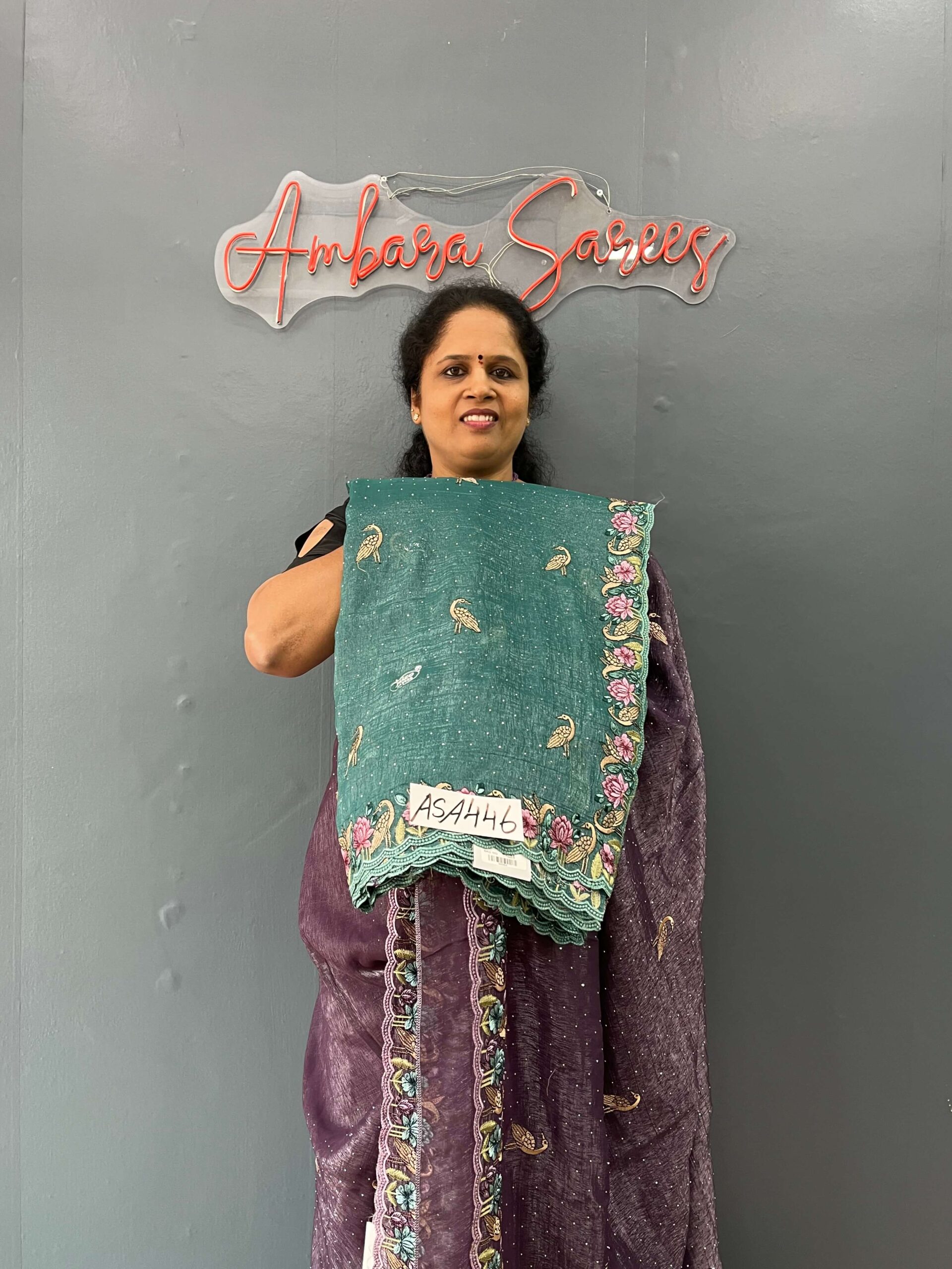 - Blouse features exquisite embroidery, beautifully detailed neck work, and full intricate craftsmanship.