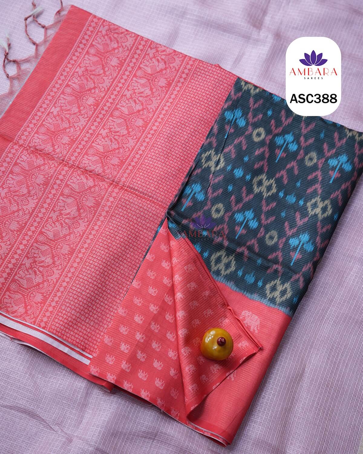 Pochampally-inspired ikkat designs woven into the body or pallu for a traditional, geometric elegance