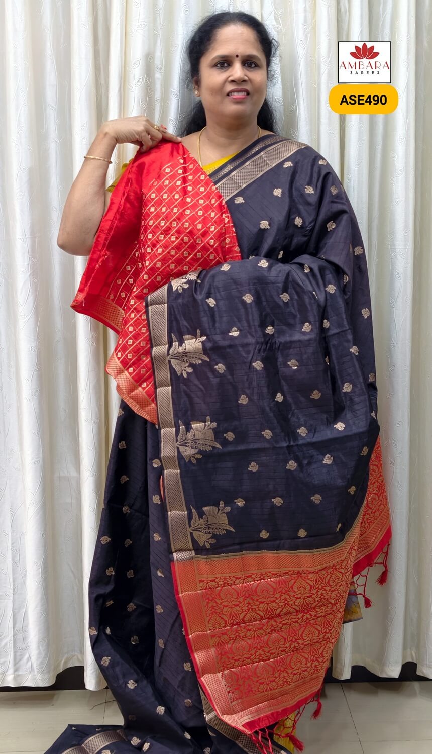 Black With Red Semi Tussar | ASE490