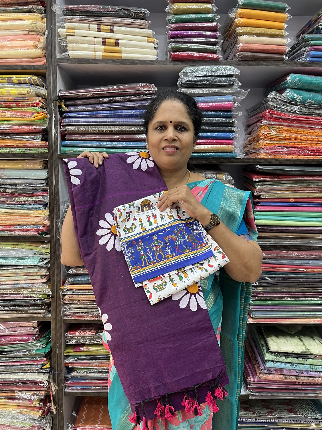 Comes with a contrast cotton printed blouse for a striking pairing