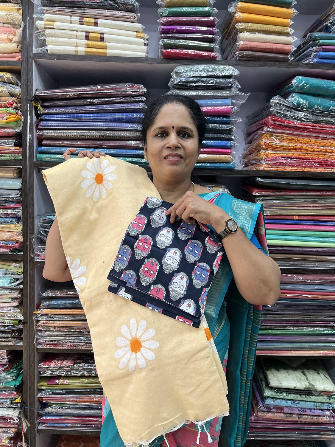 • Comes with a contrast cotton printed blouse for a striking pairing