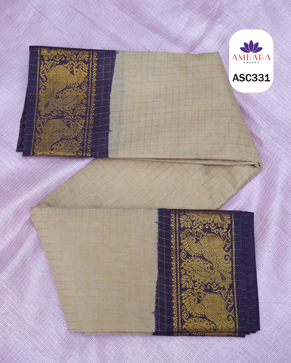 Light Cream Sungudi Cotton Saree with Wine Border Checks | ASC331
