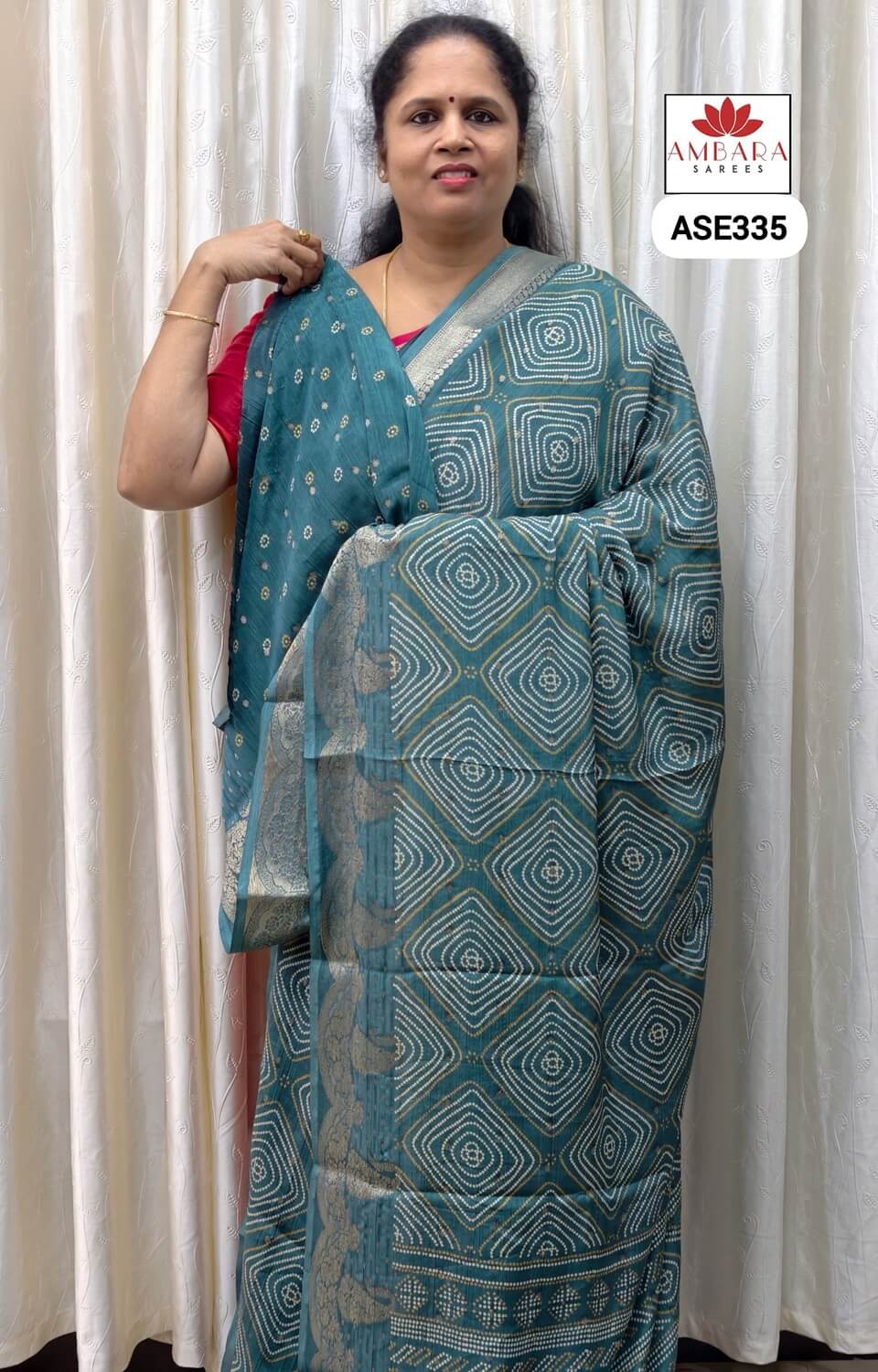 Printed blouse, often in a contrasting or coordinating design, that enhances the overall appeal of the saree.