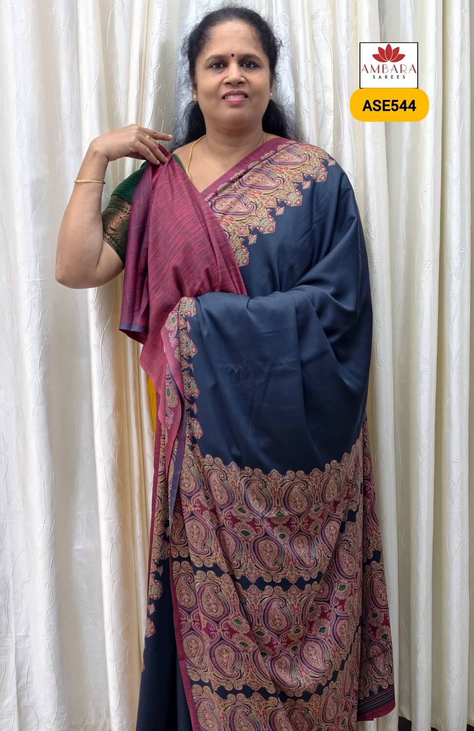 Features a beautiful mango (paisley) design border, adding a traditional touch with artistic curved motifs inspired by classic Indian patterns.