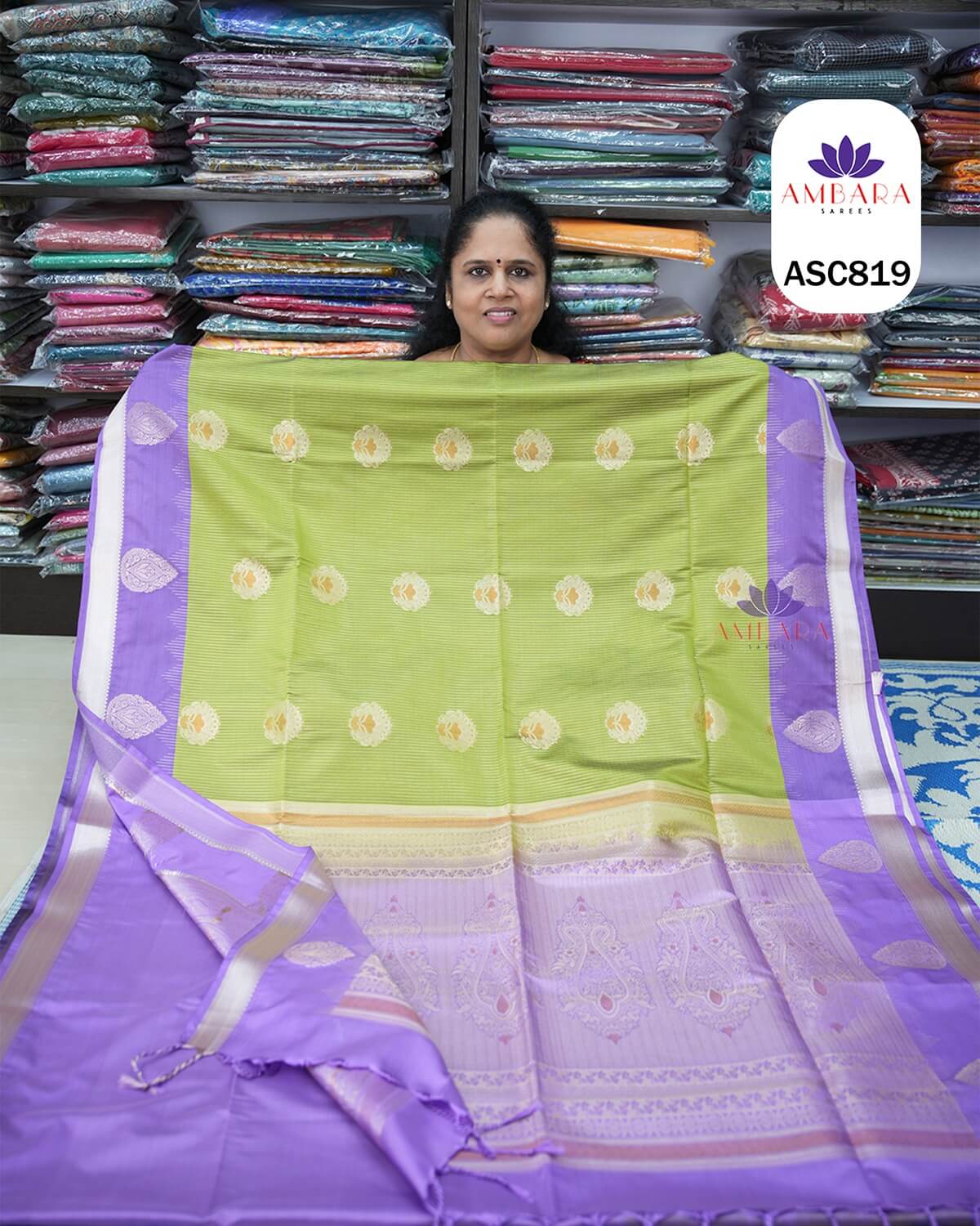 Contrast thread-woven borders adding definition and enhancing the saree’s appeal