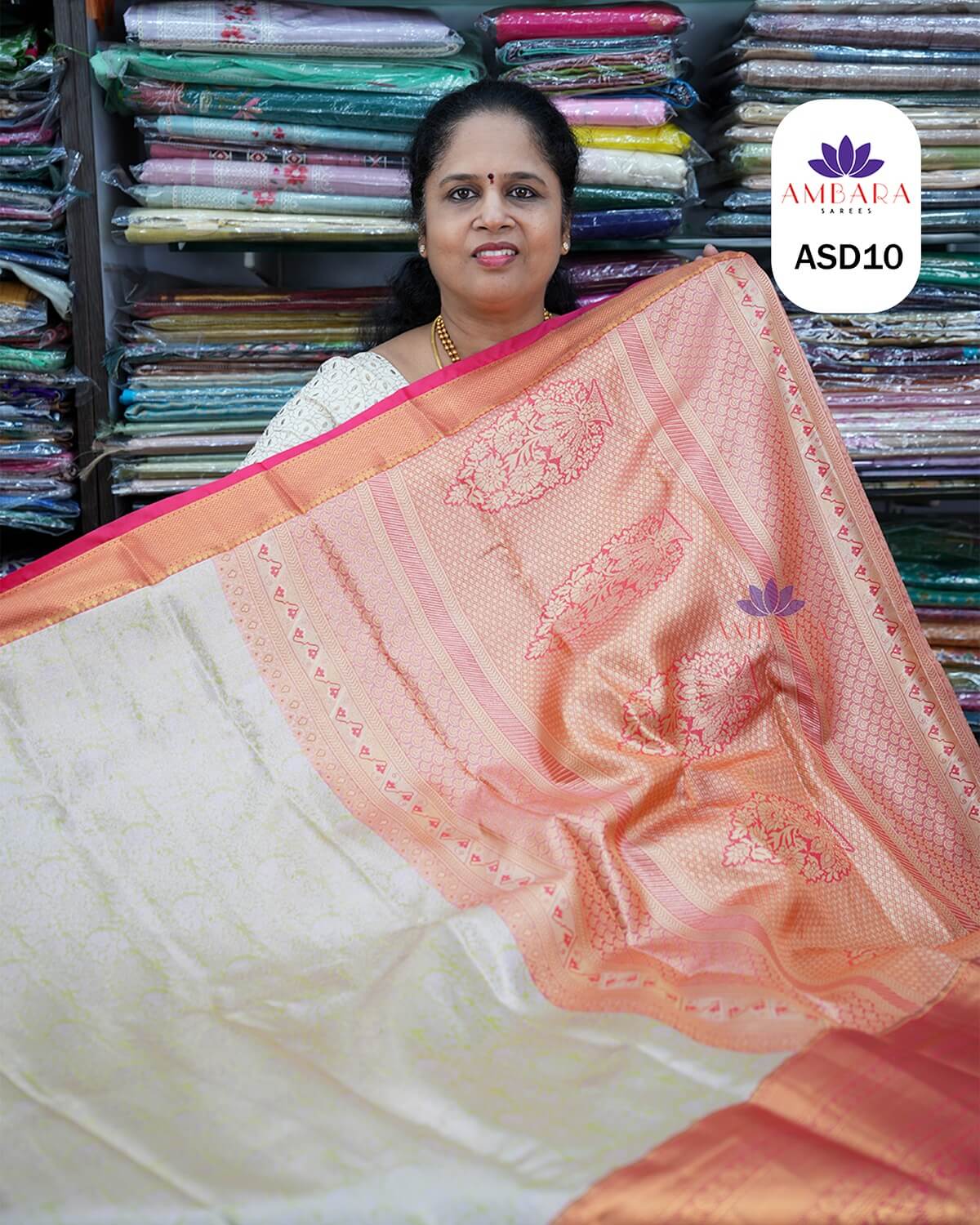 • Intricate zari weaving in traditional motifs such as peacocks, florals, and temple borders, giving an elegant bridal touch.