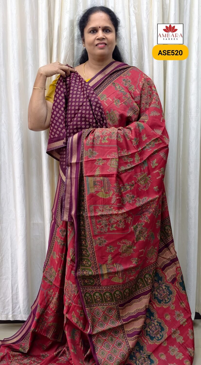 Red With Magenta Border Soft Viscose Cotton | ASE520