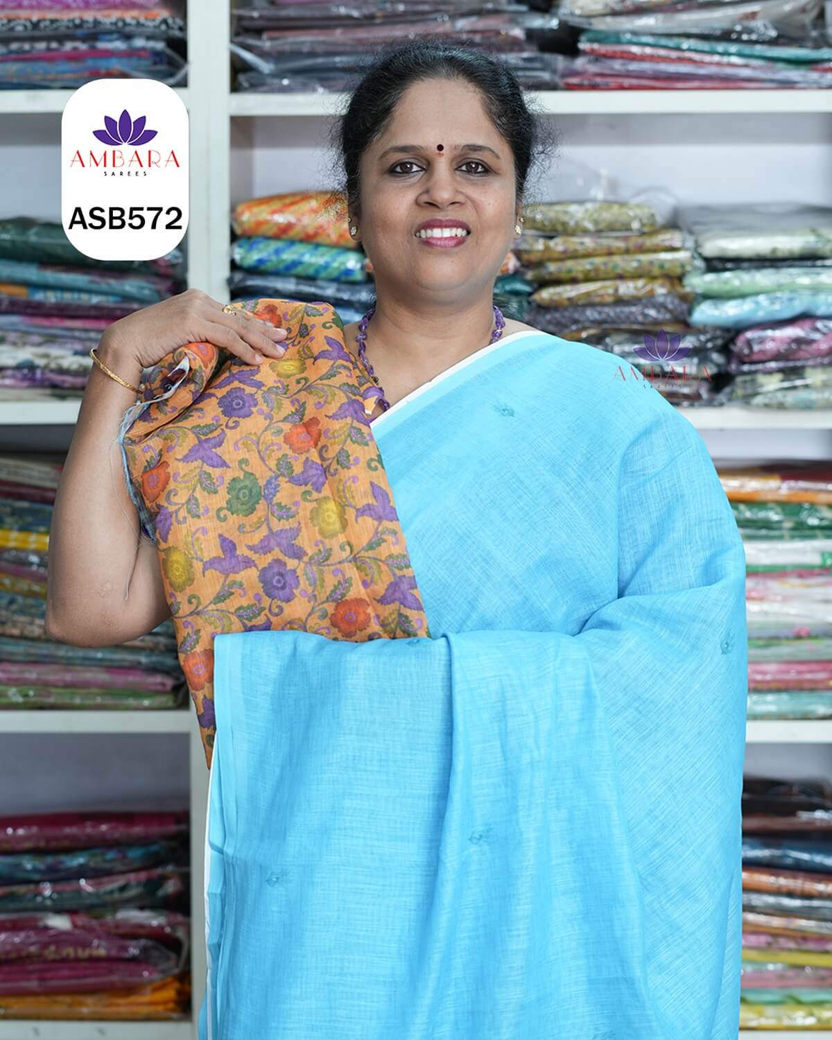 Matching printed Kalamkari blouse piece included